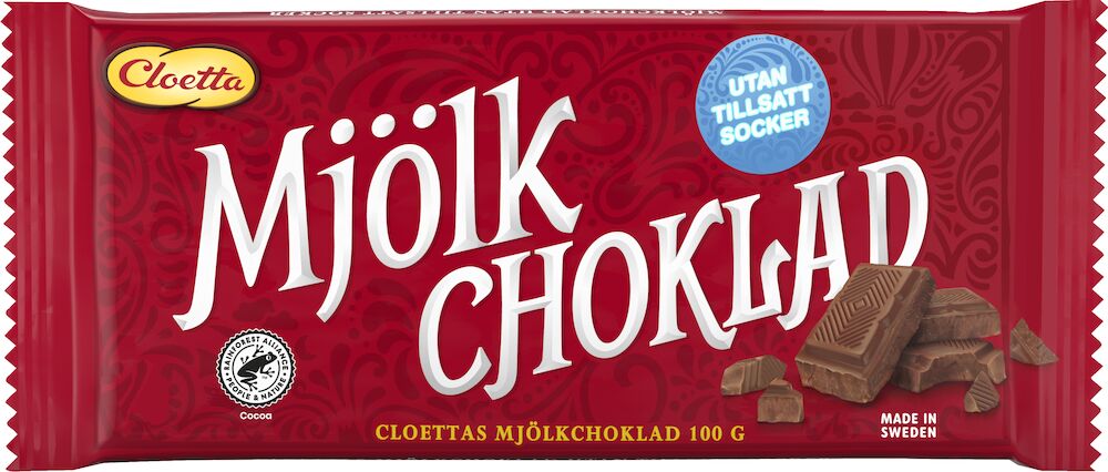 Cloetta Mjölkchoklad utan tillsatt socker är en god chokladkaka gjord på mjölkchoklad. Sedan 1914 har Cloetta gjort olika varianter av choklad utan något tillsatt socker. Den goda mjölkchokladen passar perfekt för chokladälskare. Chokladkakan innehåller 100 g.