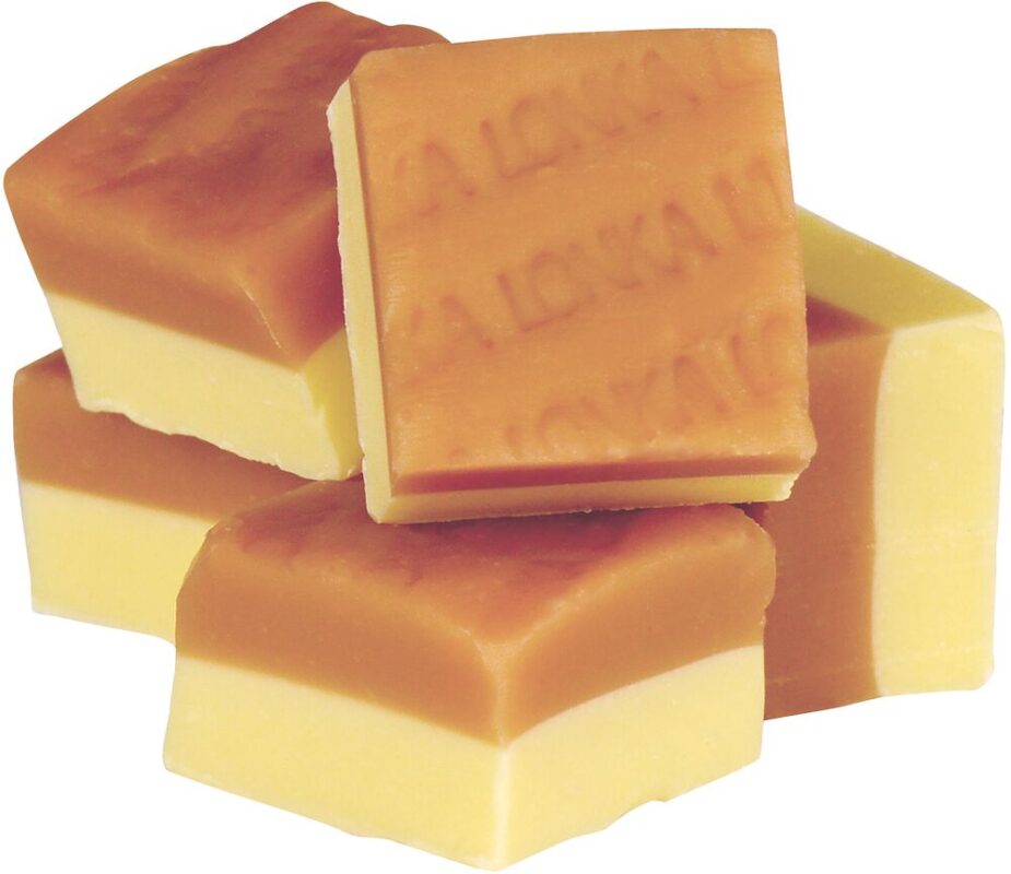 socker, glukossirap, vegetabiliska fetter (palm, kokos), SKUMMJÖLKSPULVER, maltodextrin, salt, naturliga aromer, emulgeringsmedel (SOJALECITIN, e473), färgämne (e161b), vaniljextrakt. Kan innehålla ÄGG, JORDNÖTTER, HASSELNÖTTER och MANDEL.