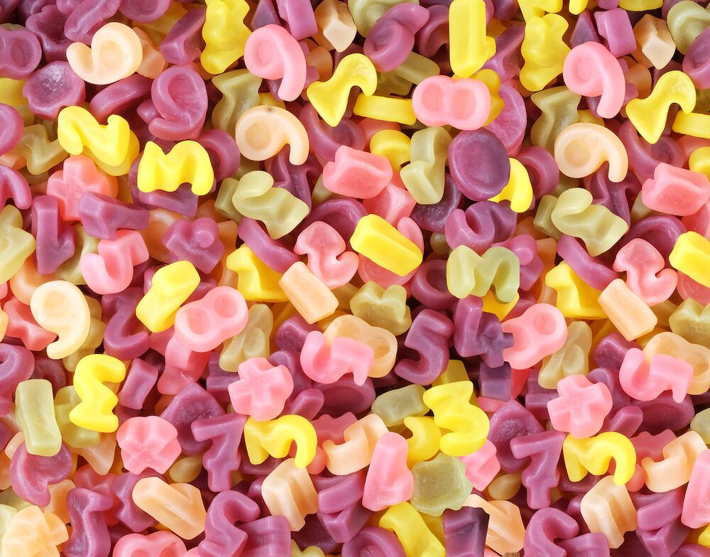 Mjuka godissiffror i smak av banan, päron, persika, tutti-Frutti och bubblegum