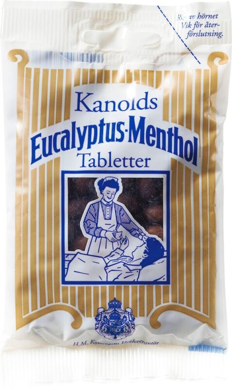 Kanolds är en klassisk halstablett som lindrar vid halsont. Upplöses gärna i en kopp rykande varm mjölk! Tabletten har en lenande smak av Eucalyptus och Menthol.