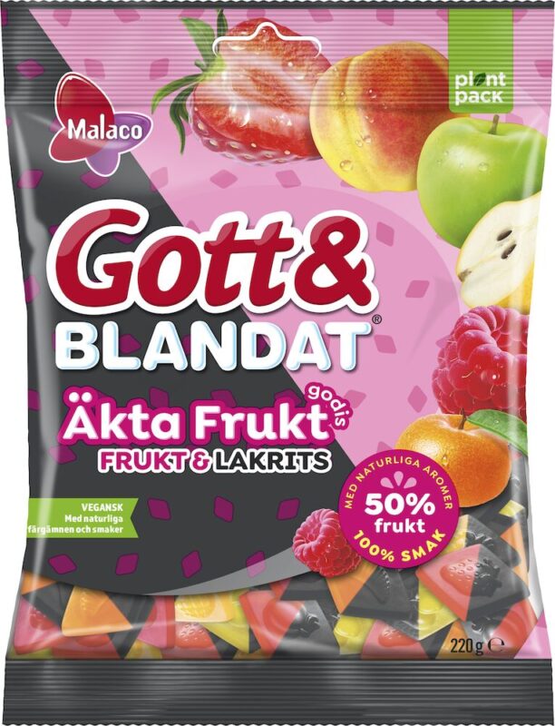 Malaco Gott & Blandat Äkta Fruktgodis Frukt & Lakrits 220g