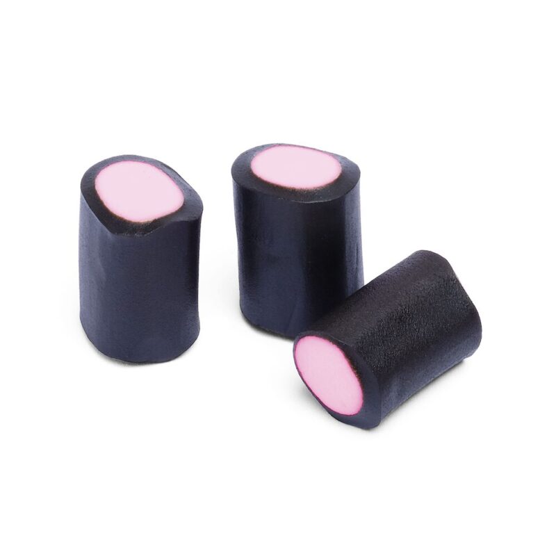 Fylld lakrits med pepparmintsmak Ingredienser: socker, glukossirap, VETEMJÖL, melass, fullhärdat kokosfett, fuktighetsbevarande medel (sorbitoler, glycerol), gelatin, lakritsextrakt, glukos-fruktossirap, färgämnen (E153, E120), aromer, salt, vegetabiliska oljor (kokos, raps), ytbehandlingsmedel (bivax), kokosfett.