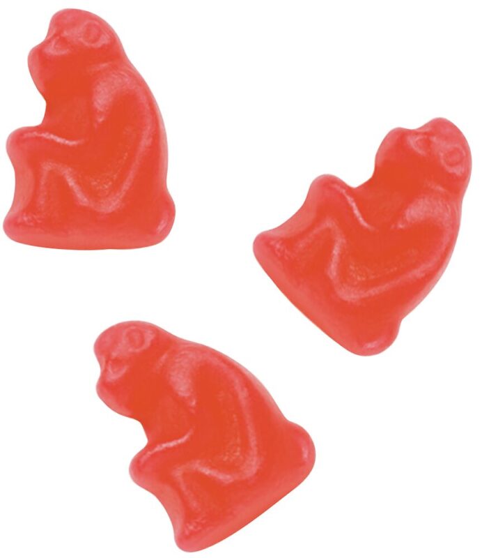 KONFEKTYR Ingredienser: socker, glukossirap, gelatin, stärkelse, syra (E270), vegetabiliska oljor (kokos, raps), arom, ytbehandlingsmedel (karnaubavax), färgämnen (E120, E160a).